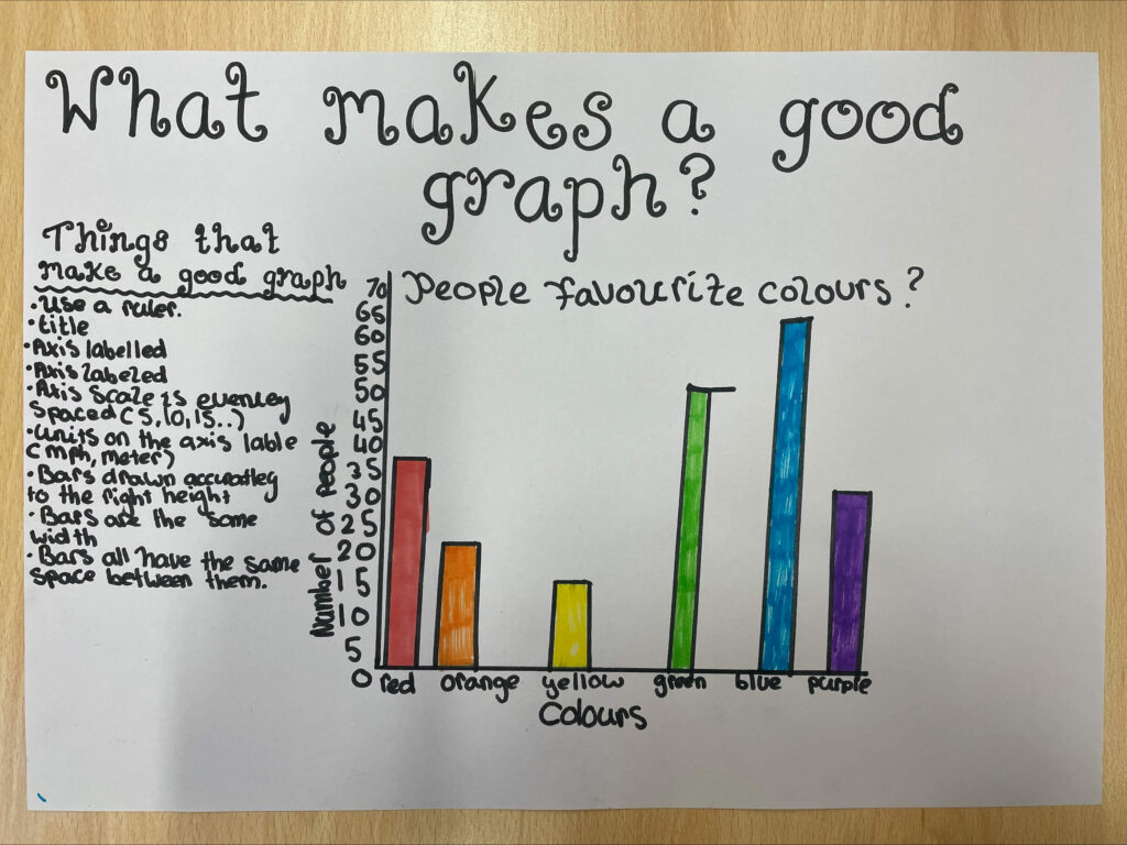 In Maths, students have been learning about ‘what makes a good graph?’, creating posters to help them revise and draw accurate graphs.